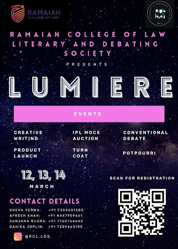LUMIERE is the first ever literary fest of Ramaiah College of Law! The fest is open to students of all Gokula Education Foundation Institutions.